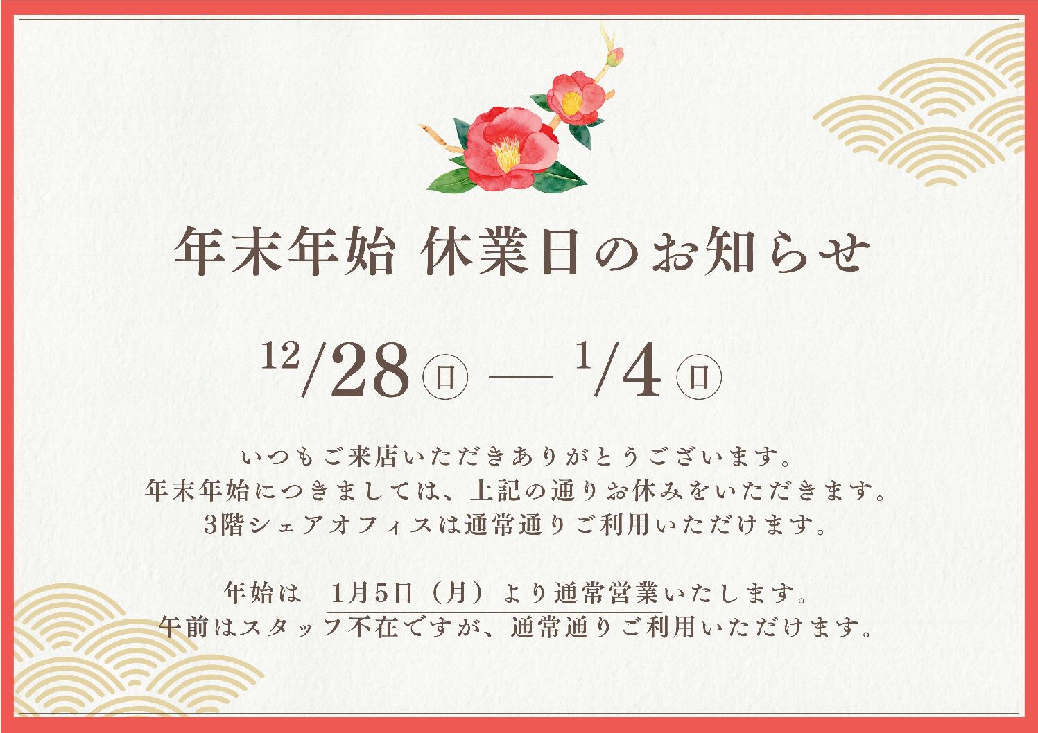 ◆年始は1月5日(月)から営業いたしますが、午前中はスタッフが不在となります。