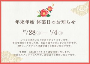 ◆2階コワーキングスペースは上記休業期間中はご利用いただけません。